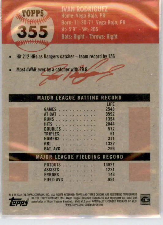 2022 Topps Chrome Platinum Anniversary #355 Ivan Rodriguez NM-MT Texas Rangers Baseball Card
