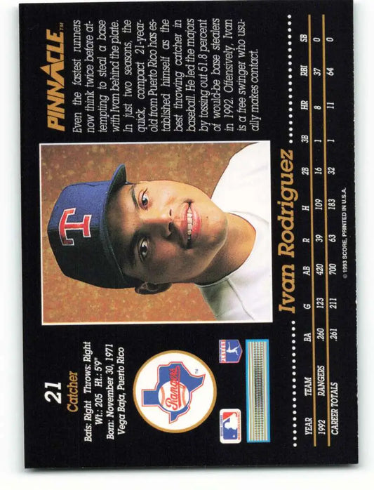 1993 Pinnacle #21 Ivan Rodriguez NM-MT Texas Rangers Baseball Card