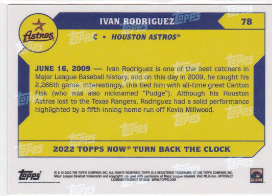 2022 TURN BACK THE CLOCK #78 IVAN RODRIGUEZ- HOUSTON ASTROS