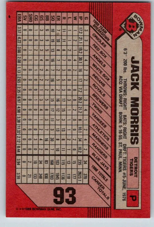 1989 Bowman #93 Jack Morris NM-MT Detroit Tigers Baseball Card