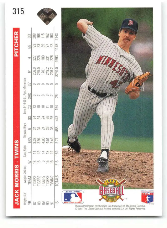1992 Upper Deck #315 Jack Morris NM-MT Minnesota Twins Baseball Card