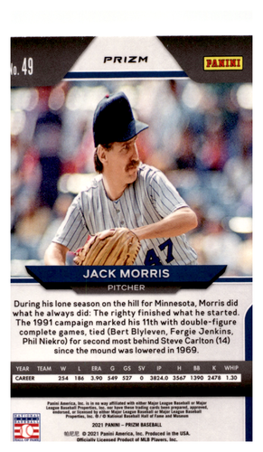 2021 Panini Prizm White Wave Prizm #49 Jack Morris NM-MT Twins ID:45250