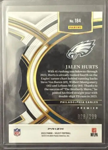 2023 Panini Select Jalen Hurts #184 Bronze Die-Cut 028/299 Premier Level Eagles