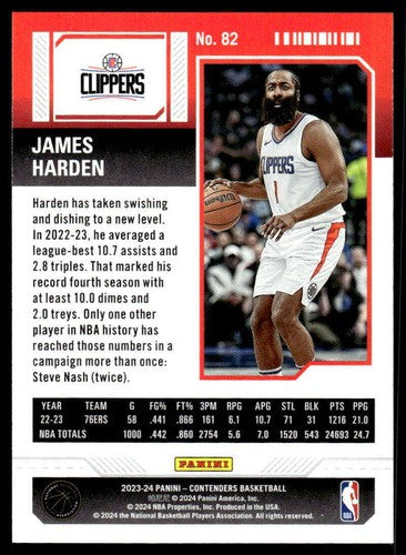 2023-24 Panini Contenders Season Ticket Retail #82 James Harden NM-MT C ID:74239