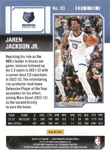 2023-24 Panini Contenders Season Ticket Retail #93 Jaren Jackson Jr. NM ID:74245