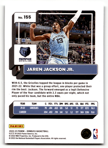 2022-23 Donruss Holo Green Laser #155 Jaren Jackson Jr. NM-MT Grizzlies ID:57888