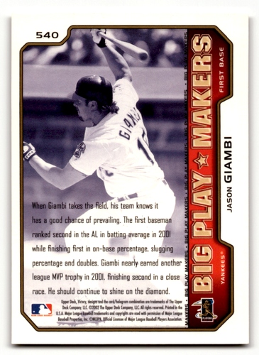 2002 Upper Deck Victory Gold #540 Jason Giambi Yankees ID:60612