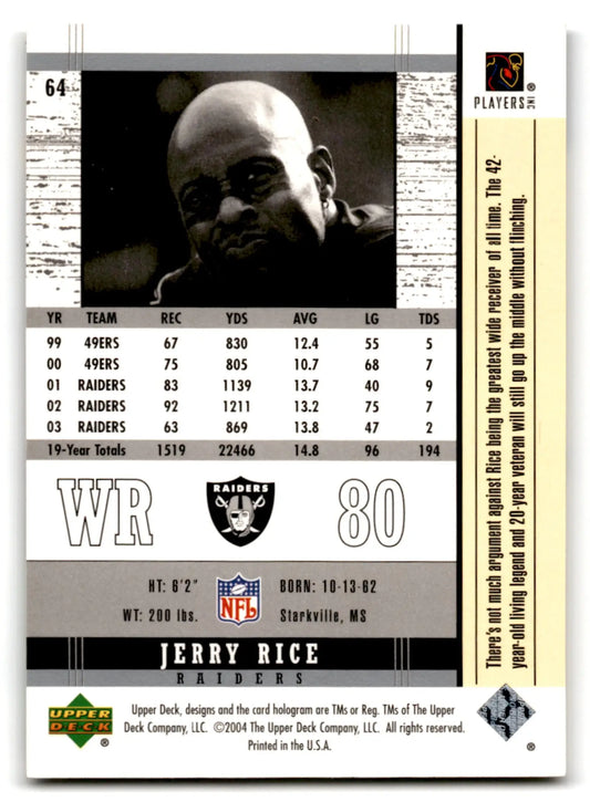 2004 Upper Deck Football Legends Jerry Rice #64 Oakland Raiders