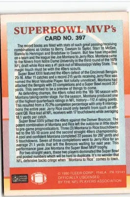 1990 Fleer #397 Superbowl MVP's (Jerry Rice / Joe Montana)