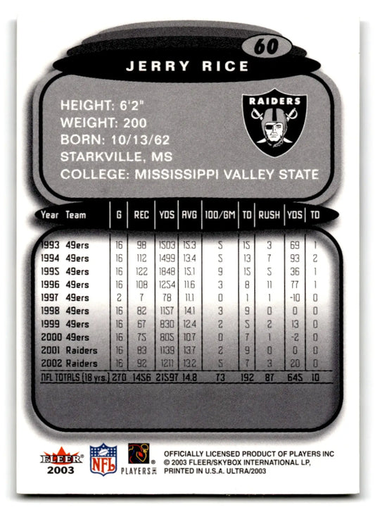 2003 Fleer Football Ultra Jerry Rice #60 Oakland Raiders