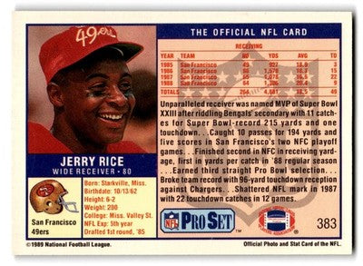 1989 Pro Set Football Jerry Rice #383 San Francisco 49ers