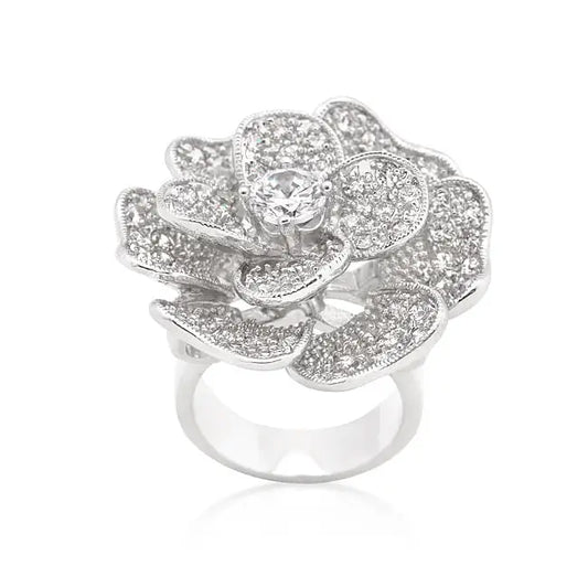 Large Flower Cubic Zirconia Cocktail Ring