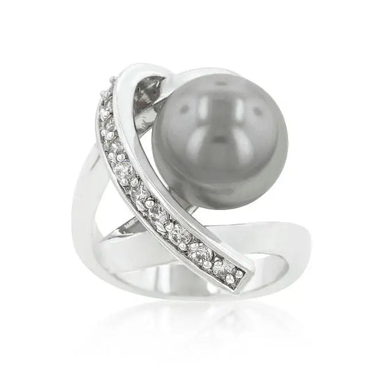 Rhodium Plated Knotted Simulated Pearl Ring
