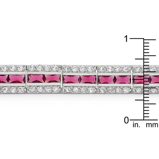 Adjustable Rhodium Plated Graduated Purple & Clear CZ Bolo Style Tennis Bracelet
