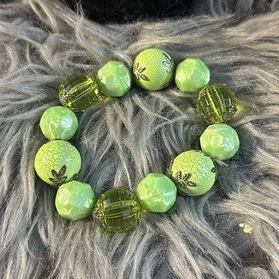 Green Beaded Necklace & Bracelet Set Large Beads Costume Jewelry Chunky