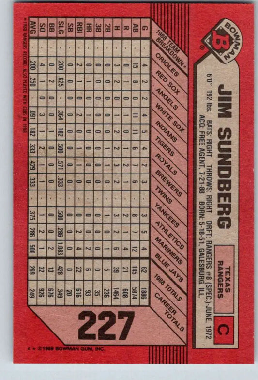 1989 Bowman #227 Jim Sundberg NM-MT Texas Rangers Baseball Card