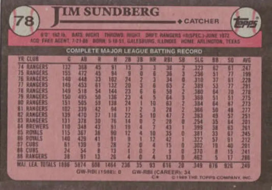 1989 Topps #78 Jim Sundberg NM-MT Texas Rangers Baseball Card