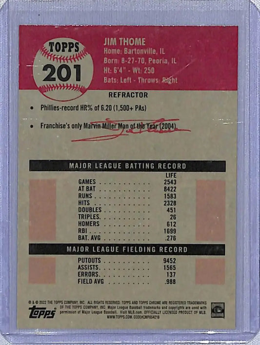 2022 Topps Chrome Platinum Anniversary Refractor #201 Jim Thome NM-MT Philadelphia Phillies Baseball Card