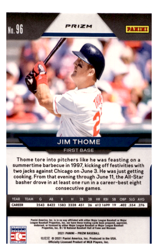 2021 Panini Prizm Silver Prizm #96 Jim Thome NM-MT Indians ID:45253