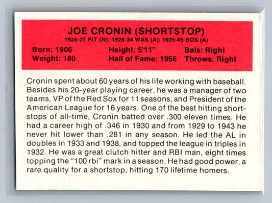 1987 Hygrade All-Time Greats #NNO Joe Cronin Boston Red Sox