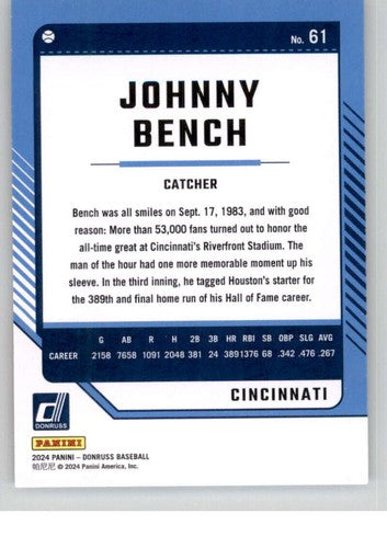 2024 Donruss #61 Johnny Bench NM-MT Reds ID:74534