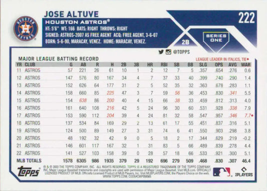 2023 Topps #222 Jose Altuve NM-MT Houston Astros Baseball Card