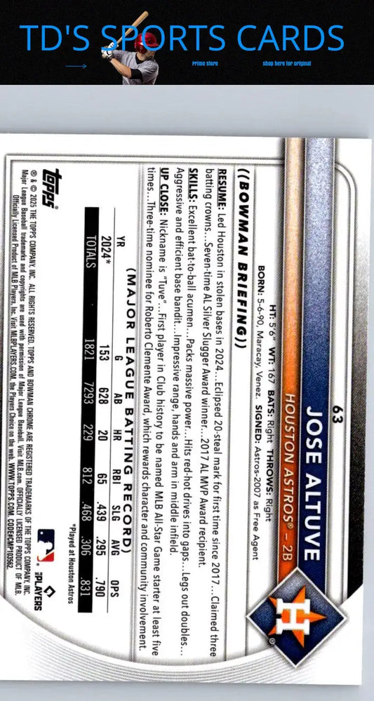 2025 Bowman #63 Jose Altuve Chrome Mojo Refractor