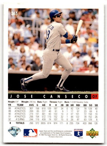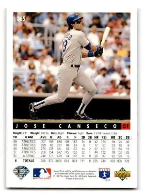1993 Upper Deck #365 Jose Canseco NM-MT Rangers ID:79214