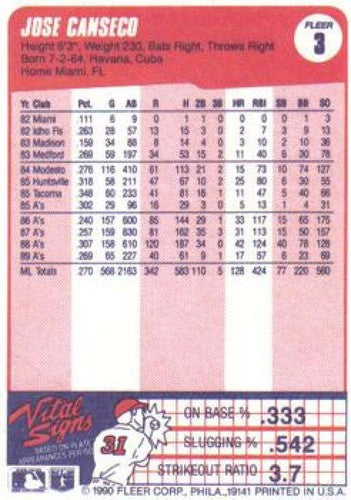1990 Fleer #3 Jose Canseco NM-MT Athletics ID:33151