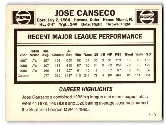 1990 Pepsi Jose Canseco #3 Jose Canseco