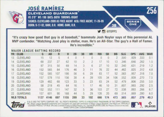 2023 Topps #256 Jose Ramirez NM-MT Cleveland Guardians Baseball Card