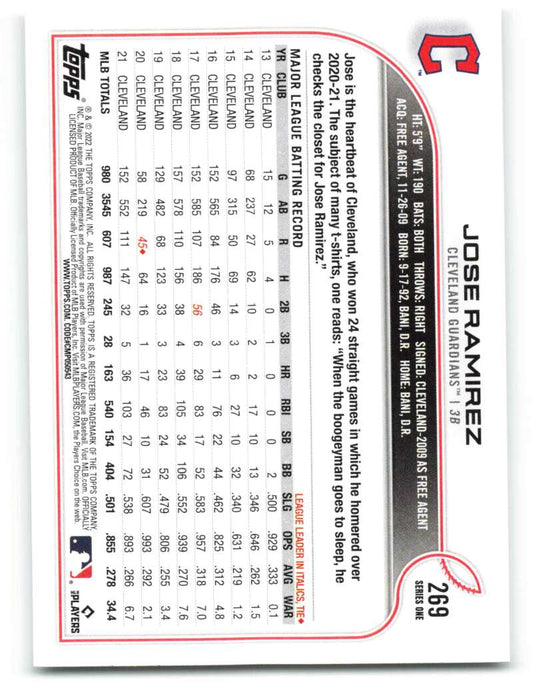 2022 Topps #269 Jose Ramirez NM-MT Guardians ID:41066