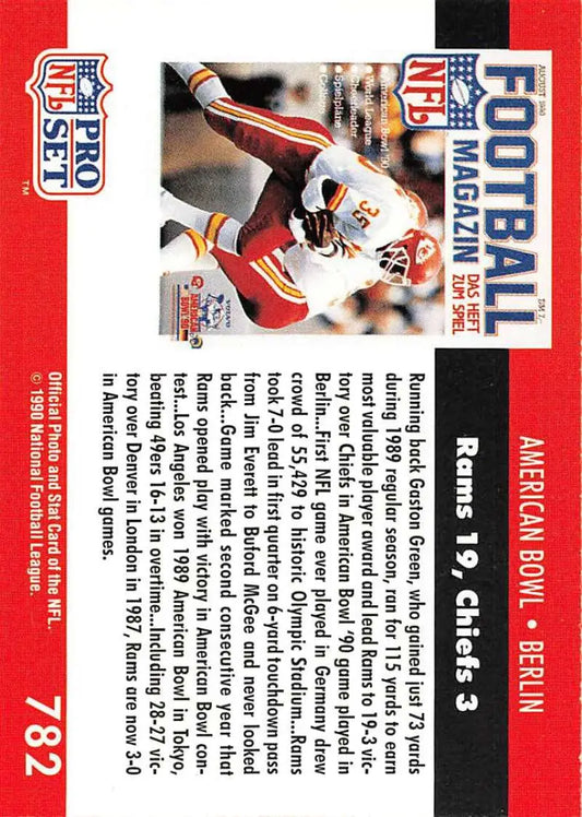 1990 Pro Set #782 American Bowl: Berlin NM-MT Los Angeles Rams/Kansas City Chiefs Football Card