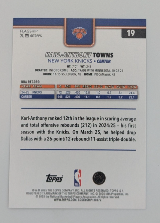 Karl-Anthony Towns 2025-26 Topps Flagship Basketball #19 Gold Parallel 1725/2025