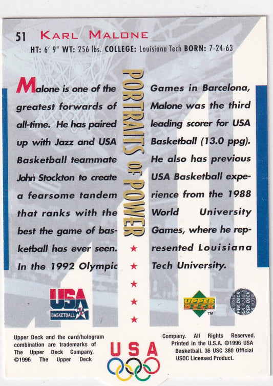 1996 UPPER DECK #51 KARL MALONE DIE CUT- UTAH JAZZ