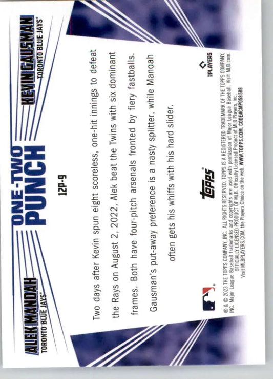 2023 Topps One-Two Punch #12P-9 Kevin Gausman/Alek Manoah NM-MT Toronto Blue Jays Baseball Card