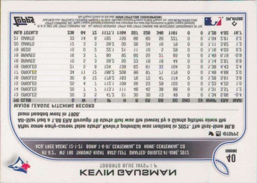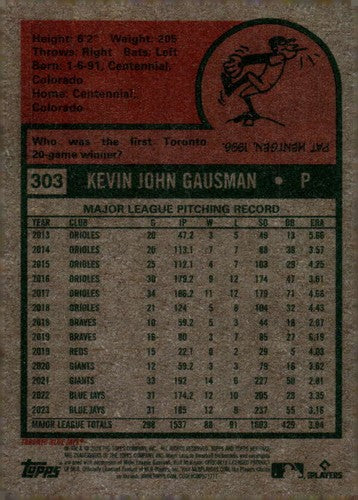 2023 TOPPS NOW PARALLEL #203 KEVIN GAUSMAN TORONTO BLUE JAYS 10/10