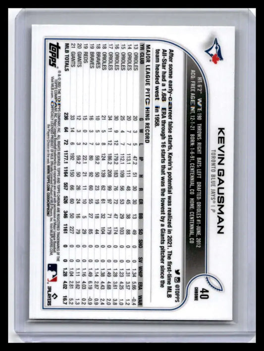 2022 Topps Chrome #40 Kevin Gausman NM-MT Toronto Blue Jays Baseball Card