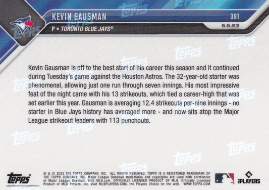 2023 TOPPS NOW #391 KEVIN GAUSMAN- TORONTO BLUE JAYS