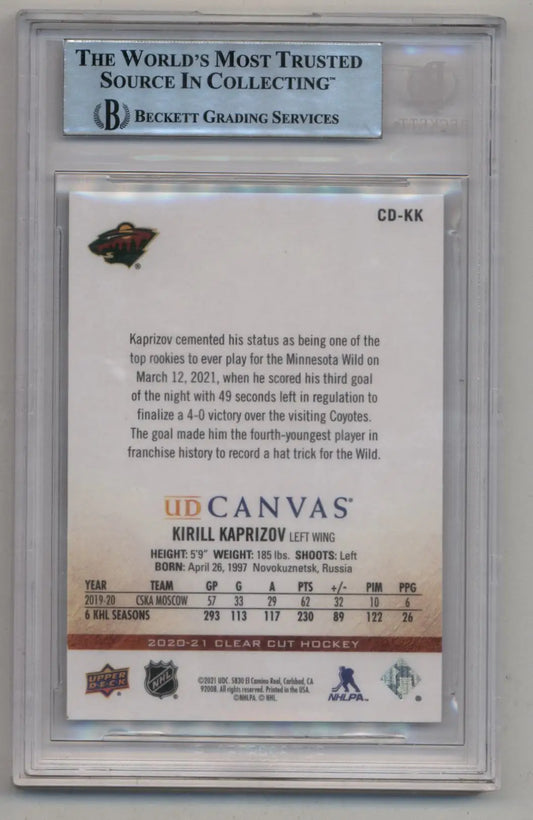Kirill Kaprizov 2020-21 UD Clear Cut Canvas Kirill Kaprizov BGS Authentication 9175