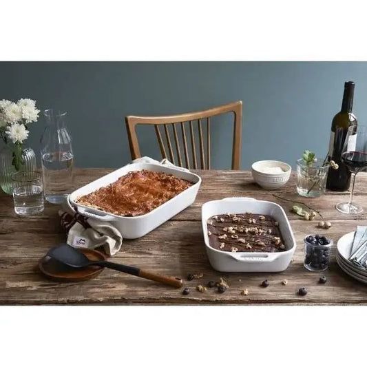 2 Piece Ceramic Stoneware Bakeware Casserole Dish Set in White