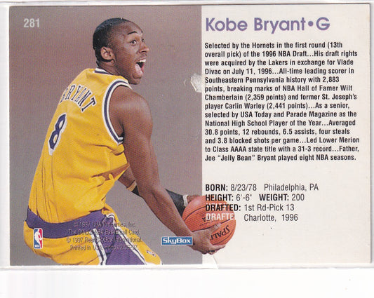 1997 SKYBOX #281 KOBE BRYANT- LOS ANGELES LAKERS