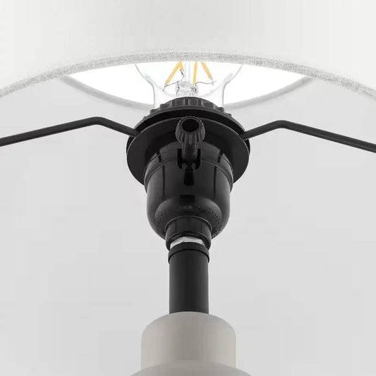 Small Grey Desk Light Table Lamp with White Fabric Shade for Bedside Nightstand