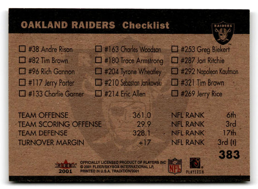 2001 Fleer Tradition #383 Oakland Raiders Team Leaders