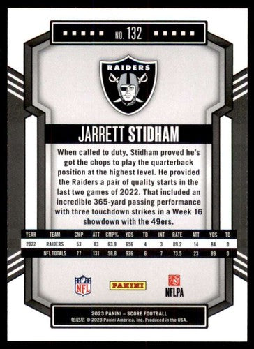 2023 Score #132 Jarrett Stidham NM Near Mint LV Raiders ID:64968
