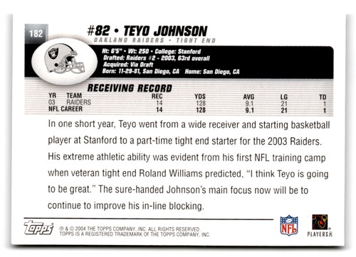 2004 Topps #182 Teyo Johnson NM-MT Raiders