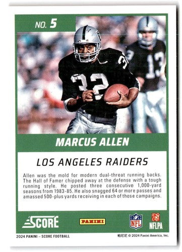 2024 Score First Ballot #5 Marcus Allen NM-MT LA Raiders ID:75477