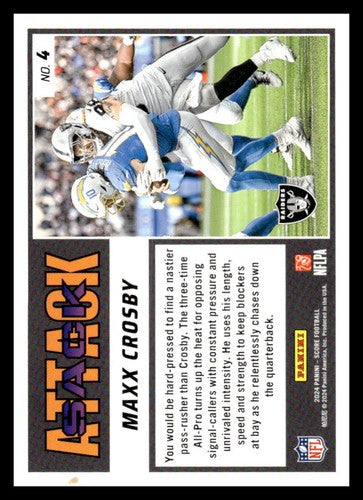 2024 Score Sack Attack #4 Maxx Crosby NM-MT LV Raiders ID:75510