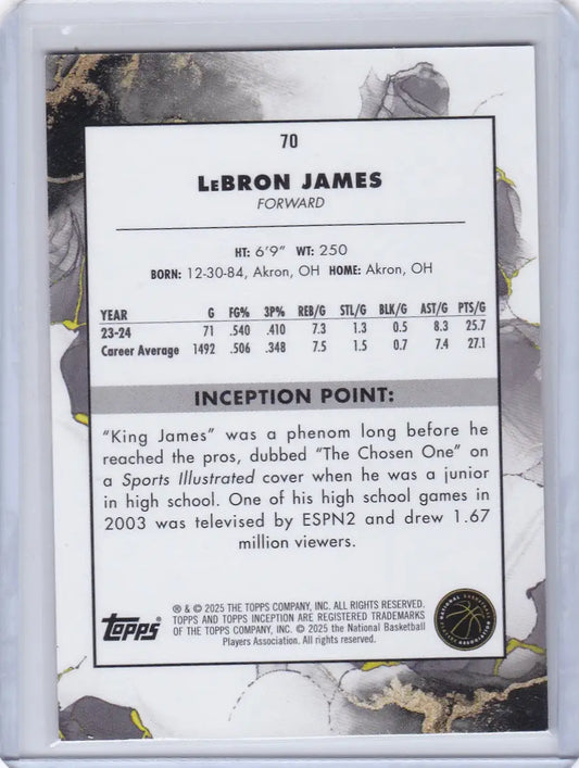 2025 TOPPS INCEPTION #70 LEBRON JAMES 14/150- LOS ANGELES LAKERS