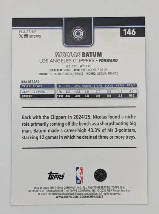Nicolas Batum 2025-26 Topps Flagship #146 Purple Holo Foil /250 Clippers